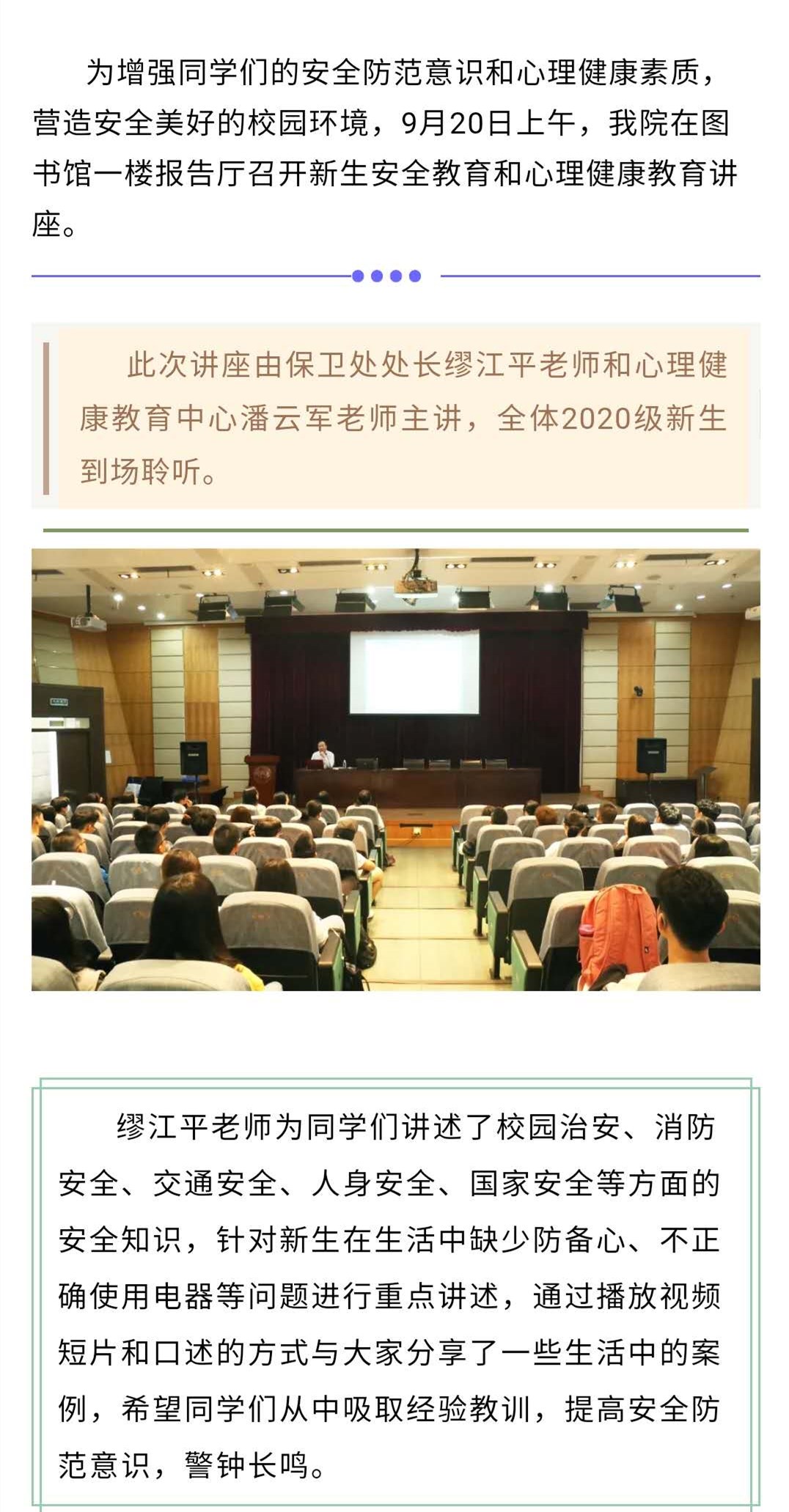 okpay钱包下载 举行2020级新生安全教育、心理健康教育主题讲座