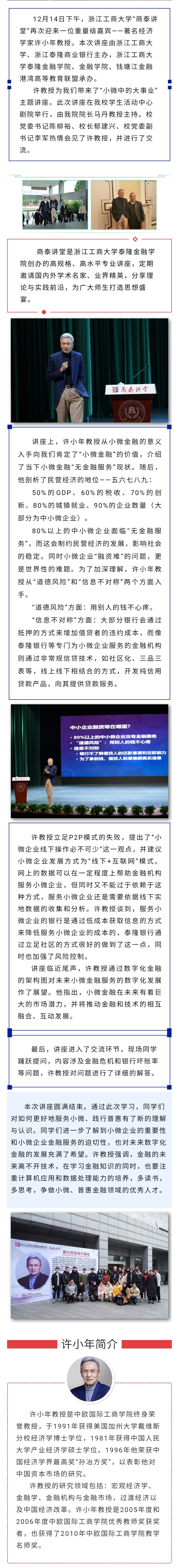 著名经济学家许小年教授做客浙江工商大学“商泰讲堂”解读“小微中的大事业”