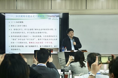 4月17日,由中国高校金融教育金课联盟、浙江工商大学共同主办,okpay钱包下载-okpay钱包app 、金融okpay钱包下载 承办的首届“中国高校金融教育金课联盟混合式金课(华东地区)骨干教师培训会” 在我校下沙校区经济楼315教室召开。来自华东师范大学、武汉大学、上海大学、南京师范大学、杭州电子科技大学、浙江财经大学、重庆工商大学、上海对外经贸大学、青岛大学、湖南工商大学、哈尔滨金融okpay钱包下载 等三十多所高校近八十位教师参加了本次培训会。
