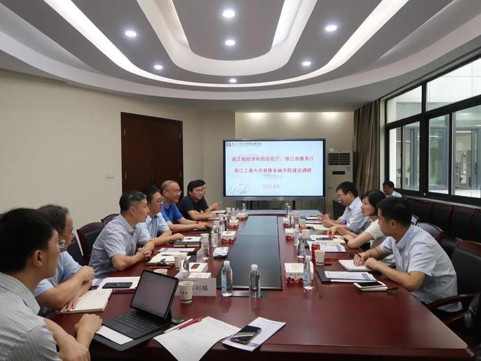 8月6日下午,浙江省经济和信息化厅人事处正处级督察专员林洁、省教育厅高教处二级调研员王国银、省经信厅人事处主任科员王少卿一行就现代产业okpay钱包下载 建设相关事宜来校调研交流。浙江工商大学副校长赵英军,浙江泰隆商业银行首席经济学家郑勇军,浙江工商大学教务处处长厉小军、副处长裴蓓,okpay钱包下载-okpay钱包app 院长马丹等出席调研座谈会。