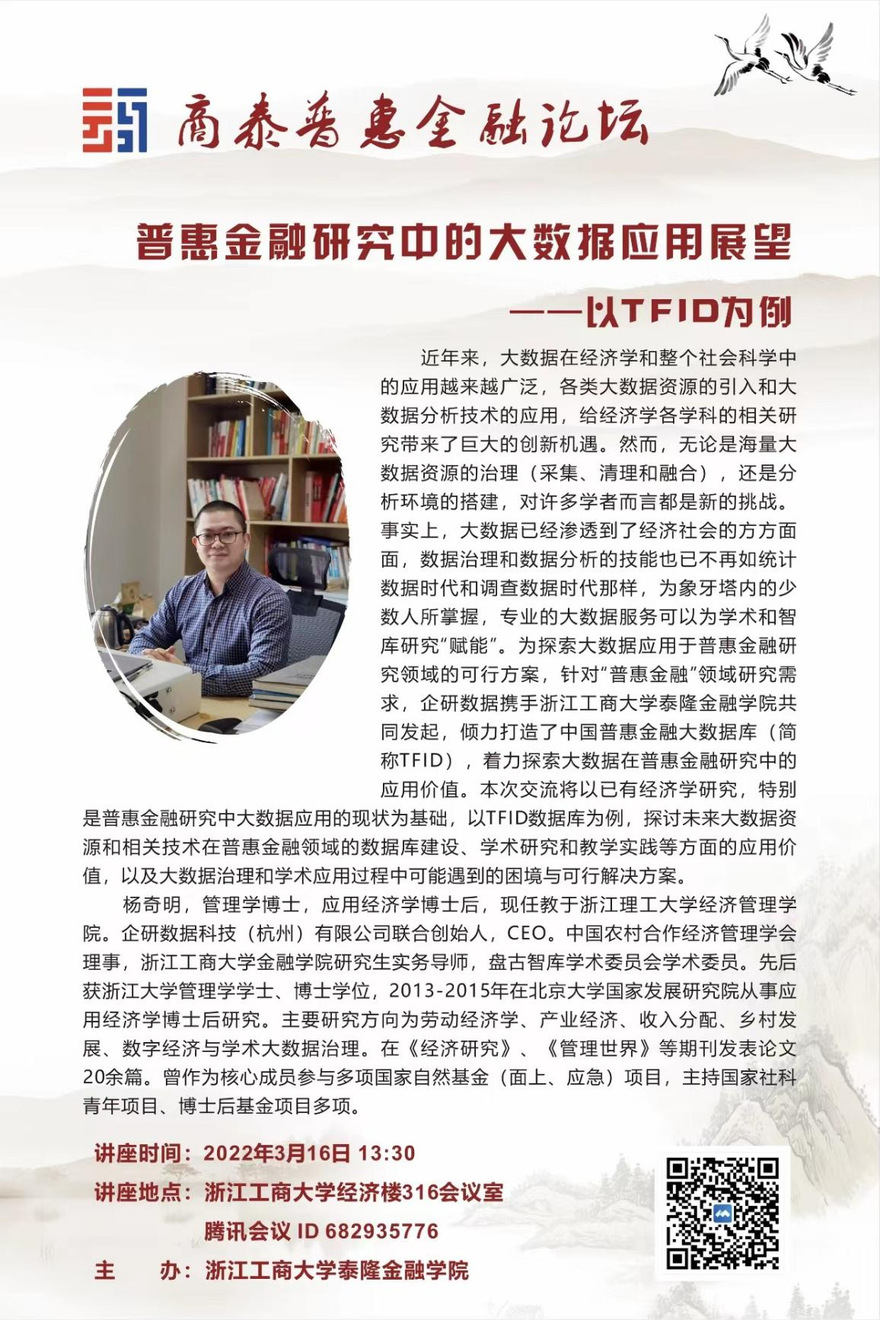 预告丨商泰普惠金融论坛——普惠金融研究中的大数据应用展望-以TFID为例