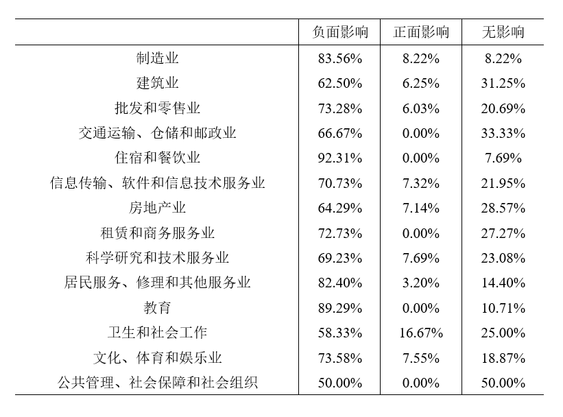 表1 不同行业小微企业和个体工商户受新冠疫情影响的情况