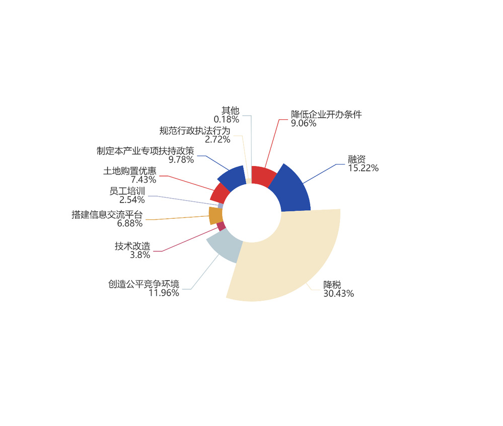 就小微企业和个体工商户自身需求而言,他们最希望政府能够在降低税费和融资便利两方面提供更多的扶持政策。
