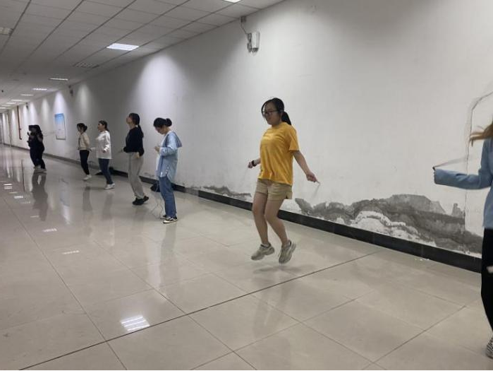 跳绳小组成立以来,线上打卡运动率:百分之八十以上,且参与人员人均运动半小时,选择自己的薄弱项进行练习,运动热情高。