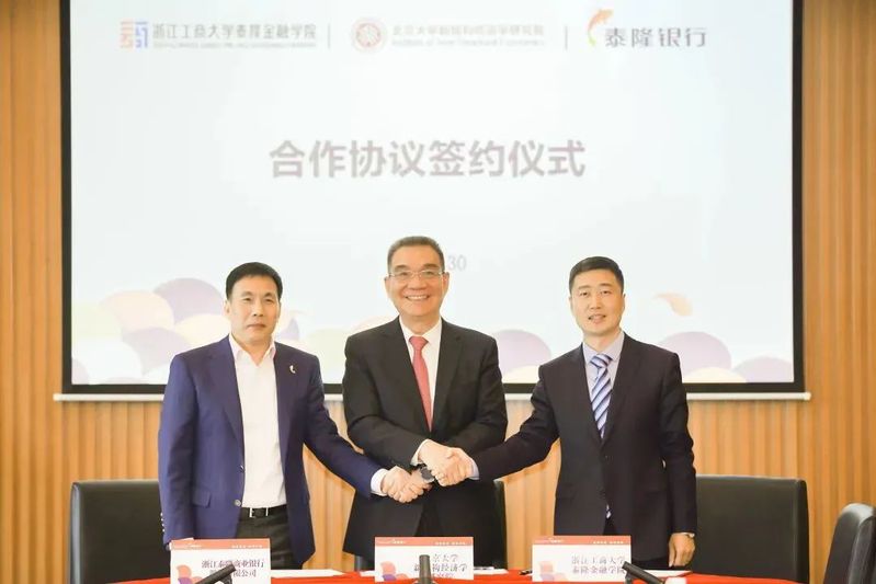 与北京大学新结构经济学研究院、浙江泰隆商业银行举行合作签约仪式