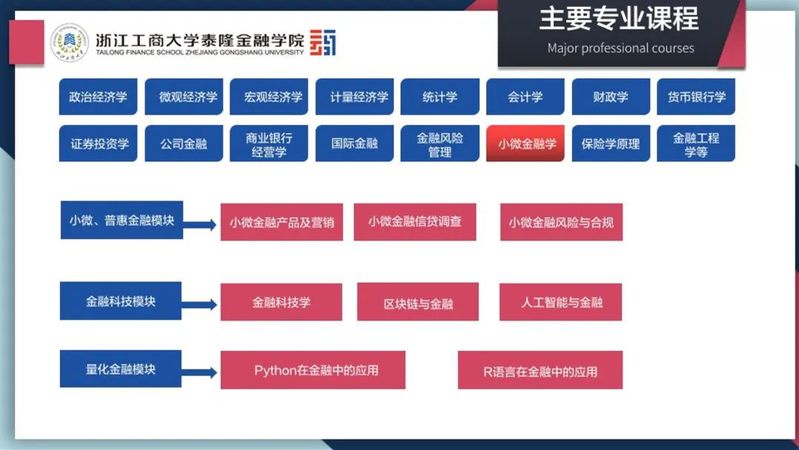 在普通金融学基本课程之上,okpay钱包下载 金融学还增设了“小微、普惠金融”“金融科技”“量化金融”等专业选修模块供学生自主选择。