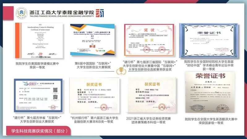 科技竞赛方面,获得四十多项国际、国内奖项,其中代表性的有美国数学建模比赛一等奖、中国国际“互联网+”大学生创新创业大赛铜奖等。