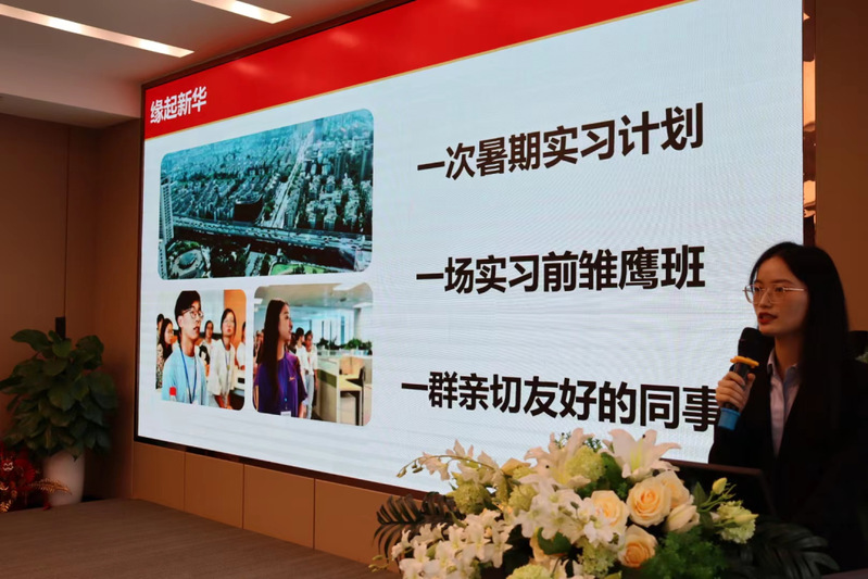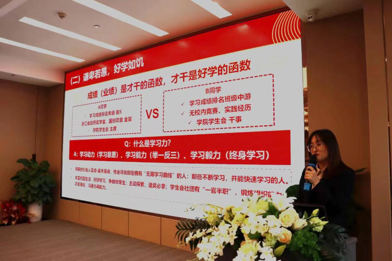 毕业于浙江工商大学金融学专业的池依曼学姐分享了她在新华保险的成长历程,她就职于培训部,从入职前培训开始她就借助公司的良好平台积极主动提升自己,同时不断总结工作经验,最终得到快速成长。学姐还介绍了新华保险和谐的工作氛围与和睦的员工关系,这也让她的工作变得非常舒心。