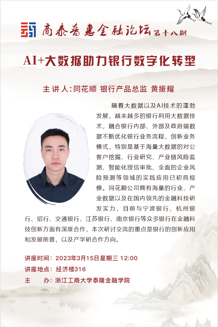 讲座预告|商泰普惠金融论坛——AI+大数据助力银行数字化转型