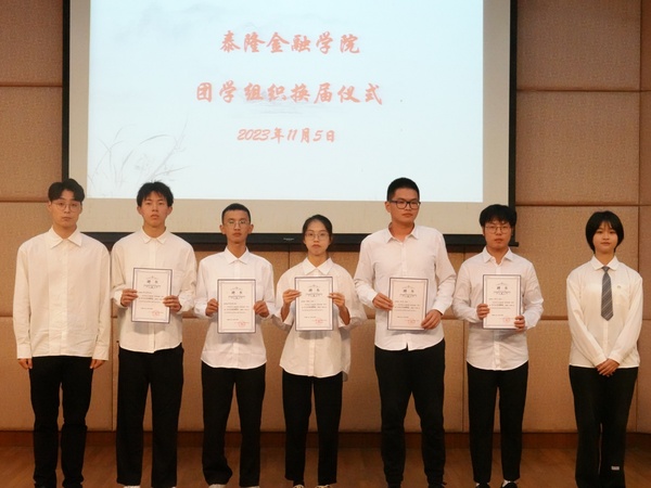 近日,okpay钱包下载-okpay钱包app 2023年团学组织换届仪式在综合楼一楼报告厅顺利举行。本次仪式由okpay钱包下载 团委组织中心温欣和团委科创中心何培矿主持,okpay钱包下载 党委副书记姜兵老师,学办主管王寿铭老师,团委书记连慧莹老师,以及团委、学生会、青志、“未来金融+”俱乐部新老两届学生干部出席仪式。