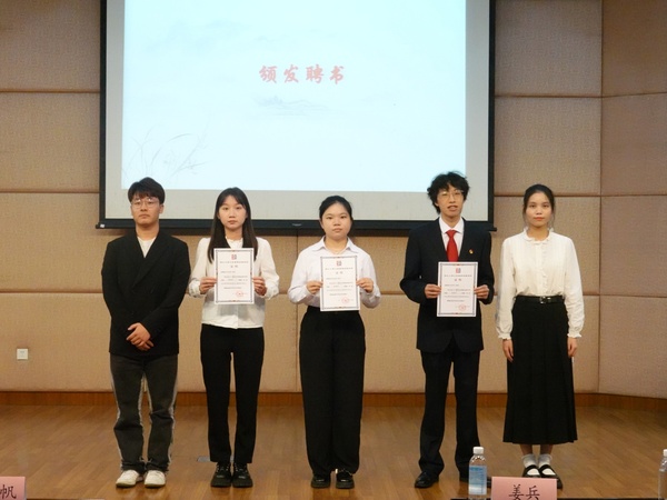连慧莹老师宣读聘任名单,新老负责人依次为团学干部们颁发聘书。连老师讲到这次换届仪式是一次很好的交流、学习机会,希望新一任团学干部们秉承优良传统,创新工作方法,热心服务okpay钱包下载 师生,共同推进组织建设和发展,同时自身能有所收获有所成长。