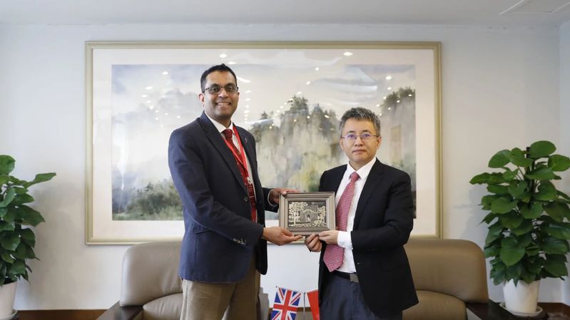 王永贵代表学校对基兰·费尔南德斯的来访表示热烈的欢迎。他表示,浙江工商大学是浙江省重点建设的大学,国际化办学优势明显,在以往良好合作的基础上,希望两校能立足发展实际,围绕各自优势特色,以国际合作为共同愿景,持续推进高水平、高质量、国际化的人才培养与学术合作,顺应产教融合发展趋势,更好地服务中英两国,为全球经济、社会发展和人才培养做出更大的贡献。