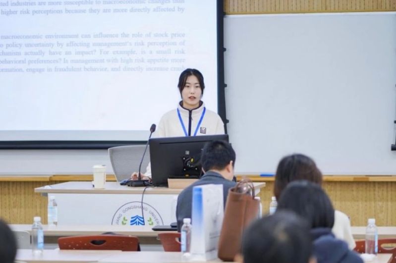 分论坛“ 不确定性与企业创新”由湖南大学马勇教授主持,高煊泽、刘晓君、张帆、高洁、孙克、卞咏分别做题为“基于citespace的ESG表现对企业价值影响的文献综述”、“Economic Policy Uncertainty, Risk Perception and Stock Price Crash Risk: Evidence from China”、“Firm' s Perception of Uncertainty, Risk Aversion, and Corporate Real Estate Investment: Evidence from China’s Listed Firms”、“Exchange Rate Changes, Leverage Ratio, and Corporate Innovation: Evidence from China”、“Factors Affecting Borrower Default of SMEs Collective Financing in China”、“From Personal Names to Corporate Actions: How Chinese Entrepreneurs' Collectivist Names Shape Corporate Social Responsibility”6场报告。
