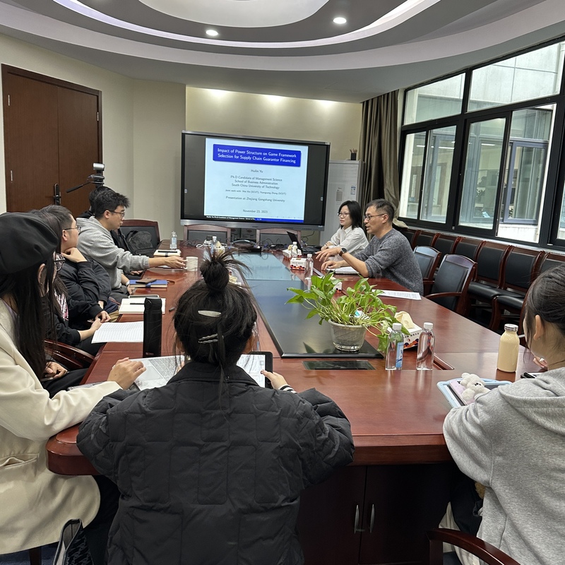 论坛首先由於慧琳博士汇报了最新一篇工作论文,汇报主题为研究权力结构对供应链担保融资博弈框架选择的影响。於慧琳博士介绍了供应链担保融资,这种融资模式有助于应对中小企业市场面临的现金流约束问题,提升整条供应链的价值和效率,因此如何更好的设计担保融资合同成为行业专家聚焦的一个话题。