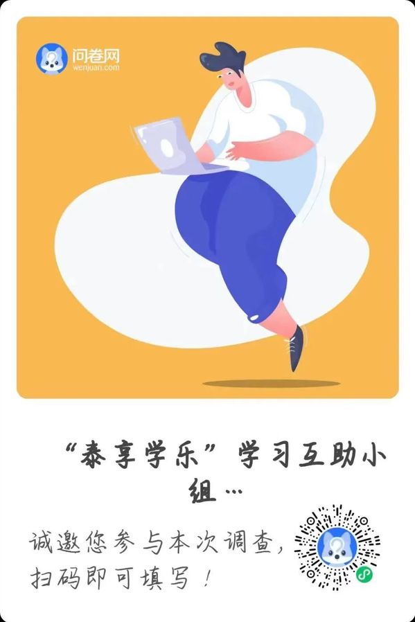 (1)已有意愿伙伴的同学,可以和满足相关参与条件的伙伴自由组合成学习互助小组,然后由在小组中担任助力团成员的同学扫描下方问卷星进行报名。请已填好问卷星报名的小组扫描下方钉钉群二维码加入“泰享学乐”学习互助小组钉钉联络群。