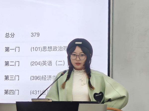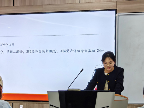 陈杨楠学姐分享了她在备考过程中的一些体会,合理选择,有时选择大于努力。她还谈到了学习的一些方法,包括如何制定合理的学习计划、选择适合自己的备考资料和培训课程等。她还强调了在备考过程中要保持耐心和恒心的重要性。