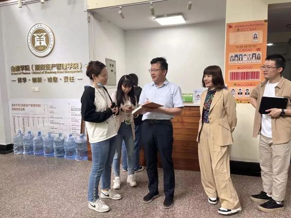 在钱江湾生活区36幢学生宿舍,双方实地走访查看了36幢六个楼层的整体装饰布置和功能设置情况,讨论商量后续建设方向。