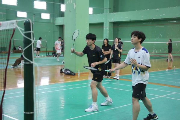 众所周知,羽毛球场上的对决,是一场力与智的较量。比赛一开始,双方便渐渐地进入状态:你攻我守,你扣我挑。赛场上,他们用球拍书写着青春的篇章,用汗水浇灌着胜利的花朵。每一次扣杀,都如同利剑出鞘,凌厉而致命;每一次救球,都如同舞者轻盈,敏捷而优雅。汗水滴落,是他们努力的见证;眼神坚定,是他们决心的体现。在激烈地对拼下,双方你来我往、不可开交,赢得了在场观众们的阵阵喝彩声。
