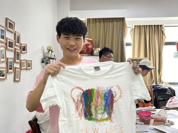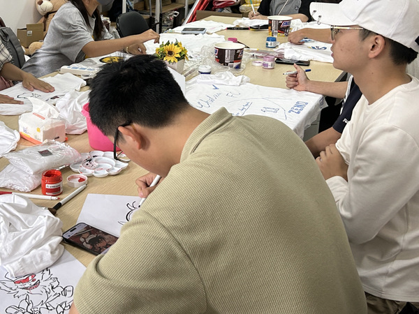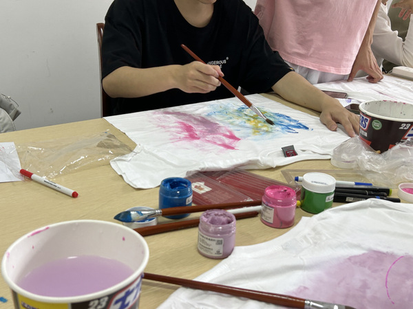 活动现场,负责人准备了各种尺码的衣服和各类画笔,邀请同学们积极参与绘画,活动进行得热火朝天,绘画完成后同学们和自己的作品合照,并且作品可以自行带走,让同学们能够珍惜这份美好的回忆。