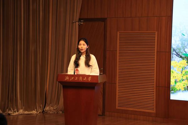 竞选社会工作之星的郑心羽,她主要讲述了自己作为学生会、班级的领头羊成长的故事:2023年度任职院主席团成员期间,带领院学生会获得浙江工商大学“最佳维权工作学生会”;任职班级班长期间,干部考核均为优秀,带领班级获校先进团支部、校“优秀团日活动”;在校期间获得浙江工商大学优秀学生干部、优秀团干部、三好学生荣誉;荣获2023年省政府奖学金,连续两年获得校综合一等奖学金;全国大学生数学建模竞赛省级二等奖(1/3)。