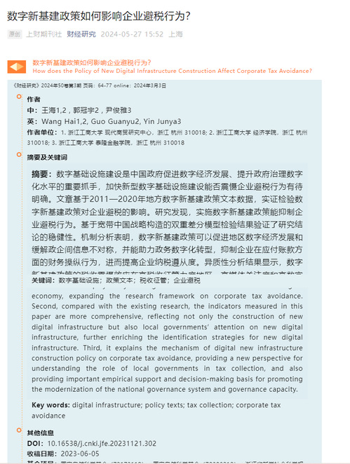 okpay钱包app 教师尹俊雅博士为通讯作者的论文《数字新基建政策如何影响企业避税行为?》在《财经研究》期刊正式发表。