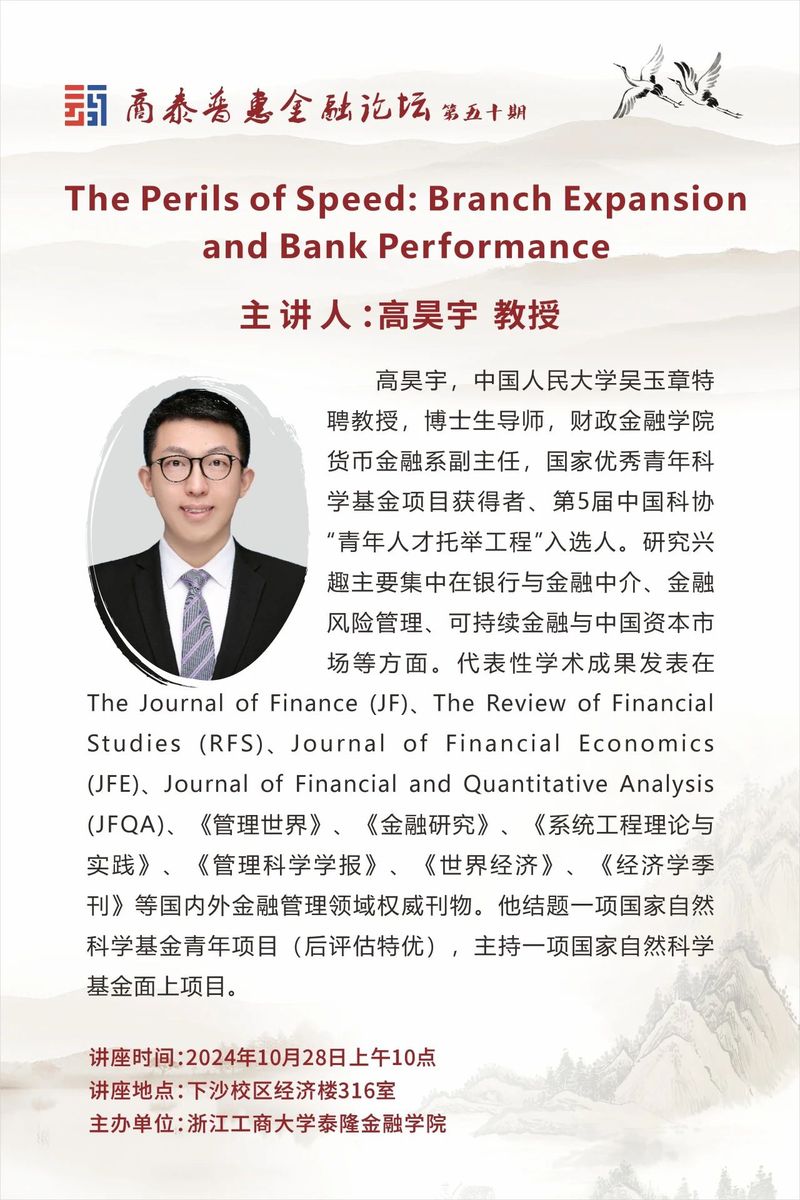 讲座预告|The Perils of Speed: Branch Expansion and Bank Performance