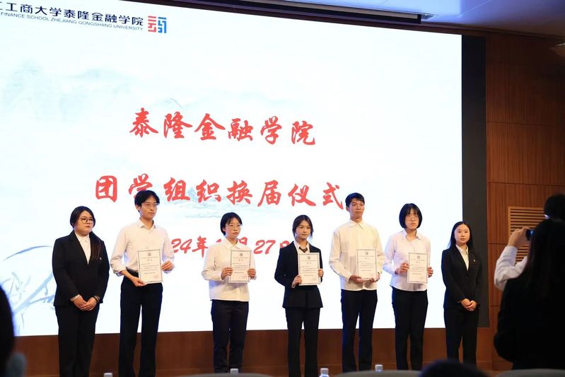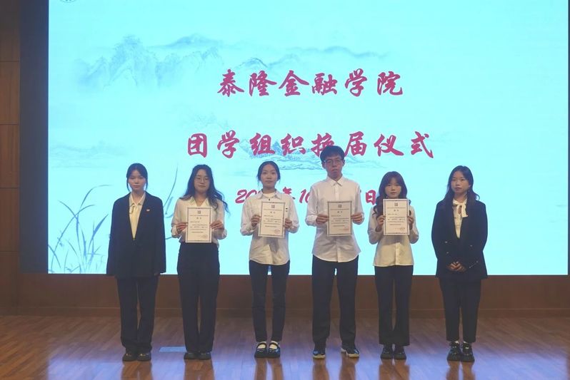 10月27日,okpay钱包下载-okpay钱包app 2024年团学组织换届仪式在综合楼二楼报告厅顺利举行。党委副书记姜兵老师,学办主管王寿铭老师,团委书记连慧莹老师以及团委、学生会、青志、“未来金融+”俱乐部新老两届学生干部出席仪式。仪式由okpay钱包下载 团委实践中心严誉嘉和团委科创中心李垚勋主持。