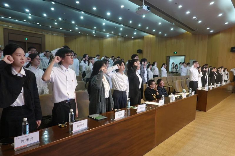 全体学生干部起立,举起右手,庄严宣誓:“我宣誓,我将恪守学生本分,带头勤奋学习,不倒置本末荒废学业,牢记组织宗旨,实心实意帮助同学解决困难,永葆理想主义情怀,公私分明,甘于奉献,扎扎实实做事,反对官僚作风,反对形式主义,营造平等氛围,坚决抵制社会不良风气侵蚀,学无止境,永远在路上。”