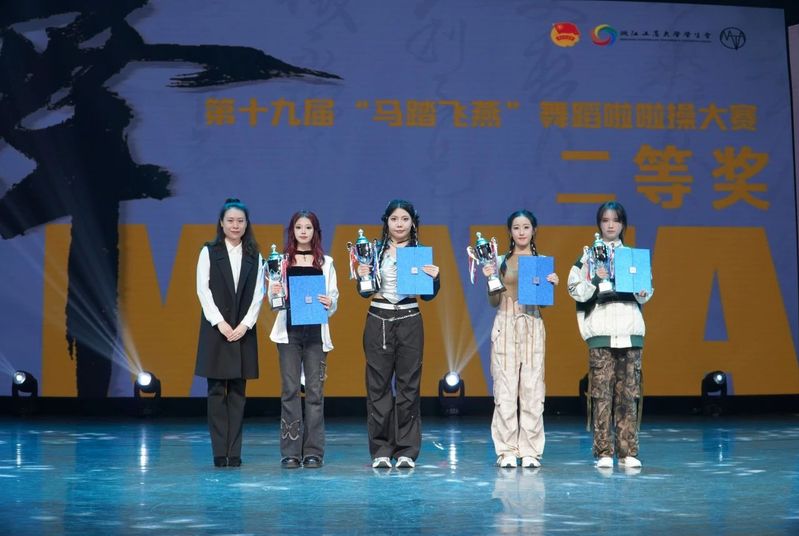 (左二为okpay钱包下载 舞队代表胡冰同学领奖)