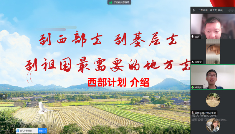 分享会接近尾声,参会的同学们也就自身对西部计划存在的困惑提出疑问,老师们和卓子贺学长都一一予以详细解答。