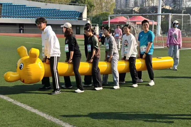 旱地龙舟的比赛是大家跨坐在充气“龙舟”上同步前行,每个人的节奏配合度直接影响前进速度,全队的默契协作就是制胜关键。这几位同学紧紧抓着“龙舟”,整齐的姿态里透着满满干劲,愿意一起为团队拼尽全力的你们真的很棒!